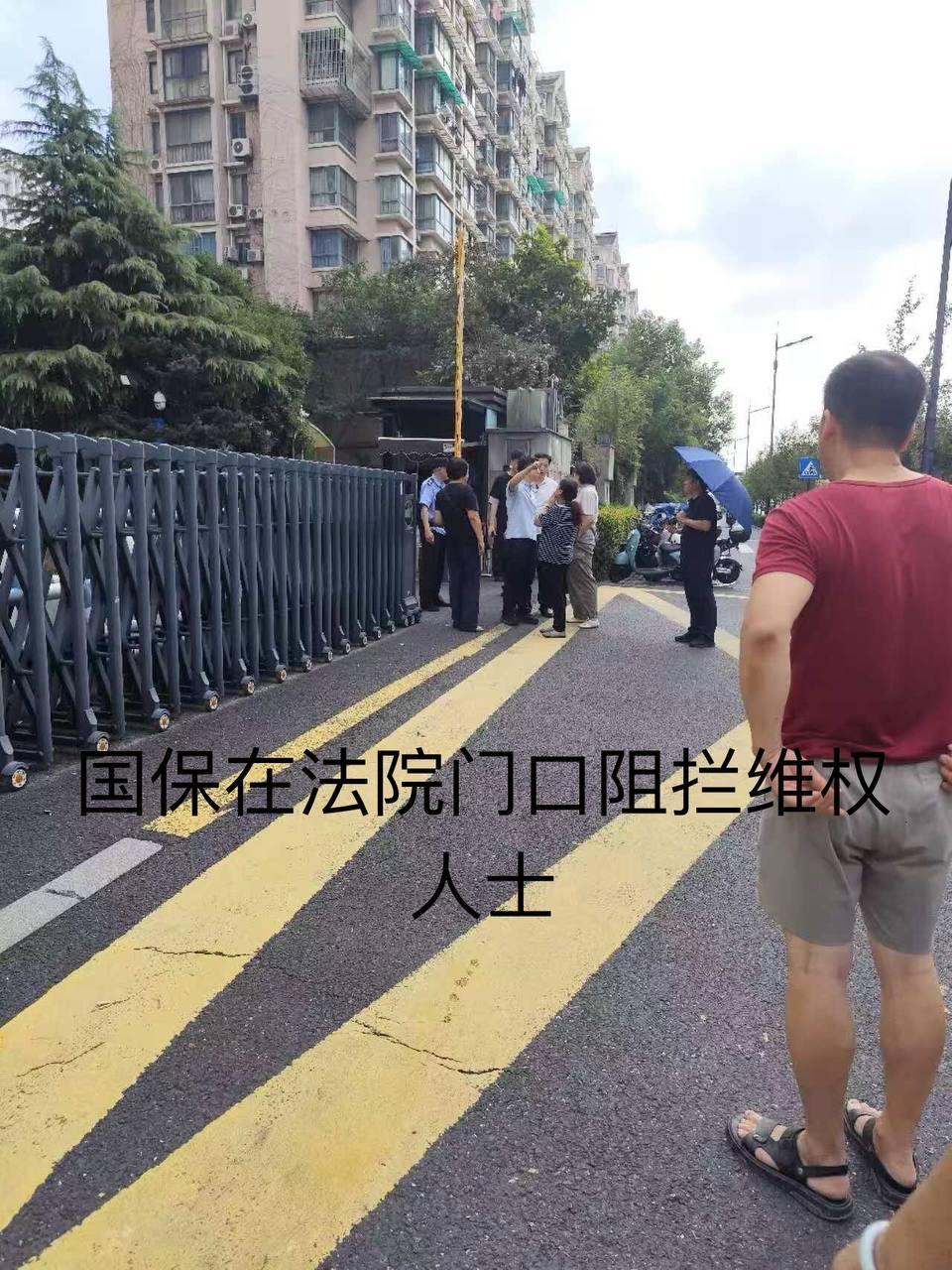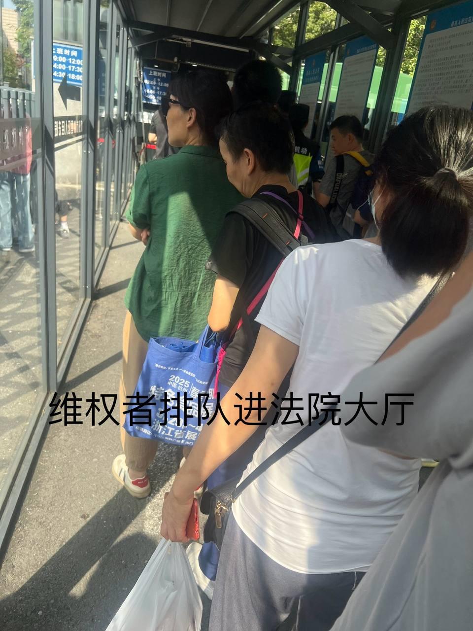 The staff of the Gongshu District Court refused to allow rights defenders to attend the trial as observers, claiming that the application process for observation had ended. Everyone questioned the court authorities as to why they did not give advance notice and even the mother of Zou Wei did not receive an observation pass. The authorities had no response. Shang Guoying from Chaoshan Village, Tangxi Town, Yuhang District, requested that a television be set up in the hall to live broadcast the trial, but was instead taken to a large courtroom next door and guarded by five bailiffs until after 1 p.m. Shang Guoying said that she discovered a big secret at the court: when she went to the toilet, she found that it was only about one square meter in size and had leg irons on the seat, just like the solitary confinement cells in detention centers and prisons. There were about ten such toilets in a row. She said she had never heard of such toilets before and this was a real eye-opener for her.