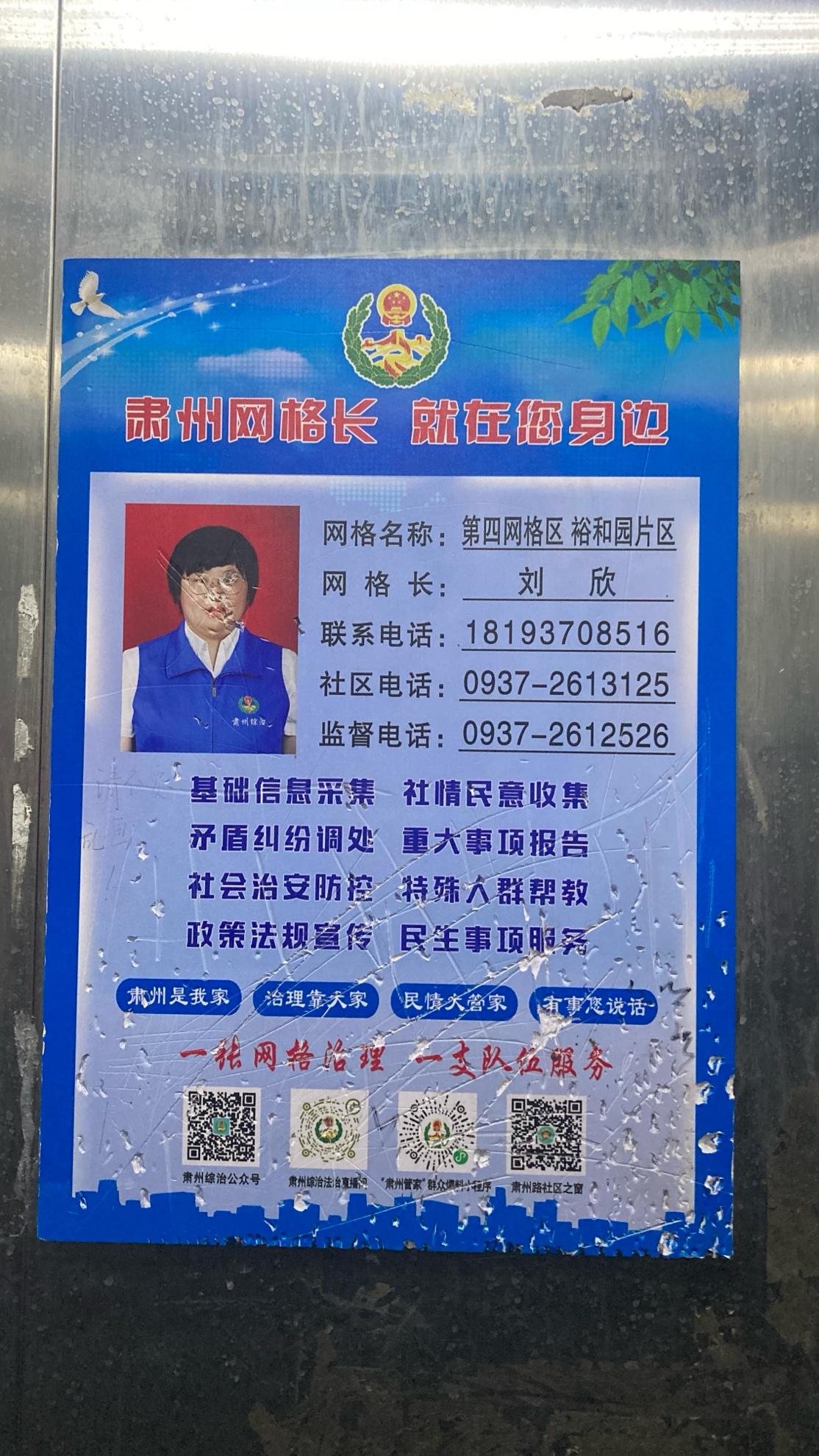 Inside that elevator, I met the same red-background ID photo again and again: a person in a blue vest, their name and phone number printed beneath the title Grid Officer. The poster looked neat, almost bureaucratically kind—“Serving the People,” it claimed.