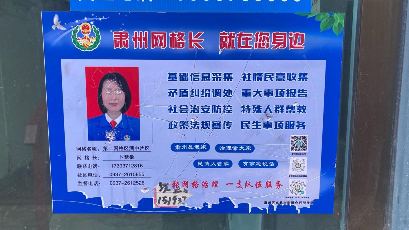 每一张都差不多:红底证件照,身穿蓝马甲,名字、手机号、社区电话、监督电话,一应俱全。贴得规规整整,看上去像是“服务群众”的标牌。
