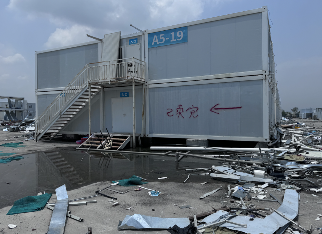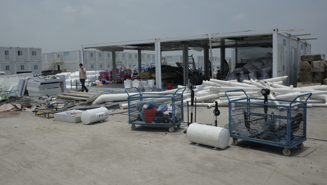南沙方舱医院自2022年11月14日动工,至少9000名建设者在项目一线战斗,700余台施工机械全面投入建设。11月25日,南沙方舱全面建成并交付,历时仅12天。2022年12月7日,国务院公布新冠病毒防疫措施“新十条”彻底放开新冠防疫政策,投入使用仅10天的南沙万顷沙方舱,顿时失去了用武之地。两年后,它已变身成为“小商品市场”,成批出售曾用于隔离的集装箱、各类家电和生活物资,曾经的“防疫阵地”如今正被清仓出货。记忆与现实交叠,一处特殊时期的城市“遗迹”,在一张张成交单据中渐渐隐没。
