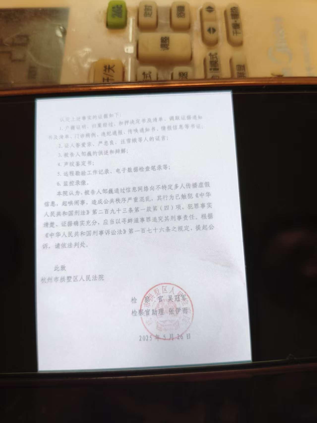 From 2007 to 2023, in order to “achieve personal goals and expand his social influence to attract public attention,” the defendant Zou Wei repeatedly used overseas media platforms, including Radio Free Asia, to publicly disseminate false information concerning major national and social events while residing in Gongshu District, Hangzhou, and other locations.The prosecution alleges that such actions “damaged the image of the state and seriously endangered national interests.”