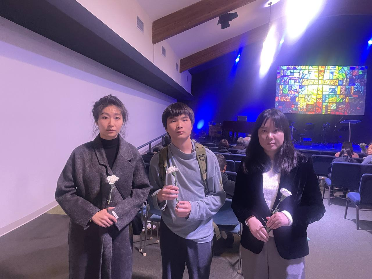 最後,他看著祈禱會的燭光,獻上了一朵白色的康乃馨為死者祈福。他告訴我們記得,是另一種形式的抵抗;活著,也是另一種形式的抵抗。他的聲音,像在告訴香港人:“沒有人應該再被迫在火裡死去。沒有人應該因為說話而被抓。沒有人應該跪著活。”