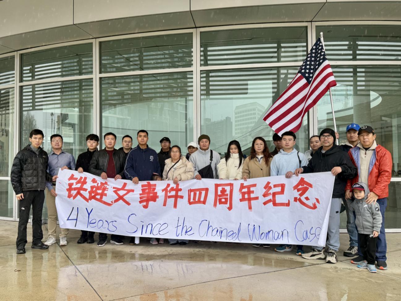 On January 4, 2026, in San Jose in the Bay Area.On a cold, rainy winter day, we stood at City Hall to commemorate the fourth anniversary of the Xuzhou chained woman incident. Four years have passed, yet the truth remains incomplete and freedom remain absent. We chose to stand here not because the matter has been resolved, but because it has never truly ended.