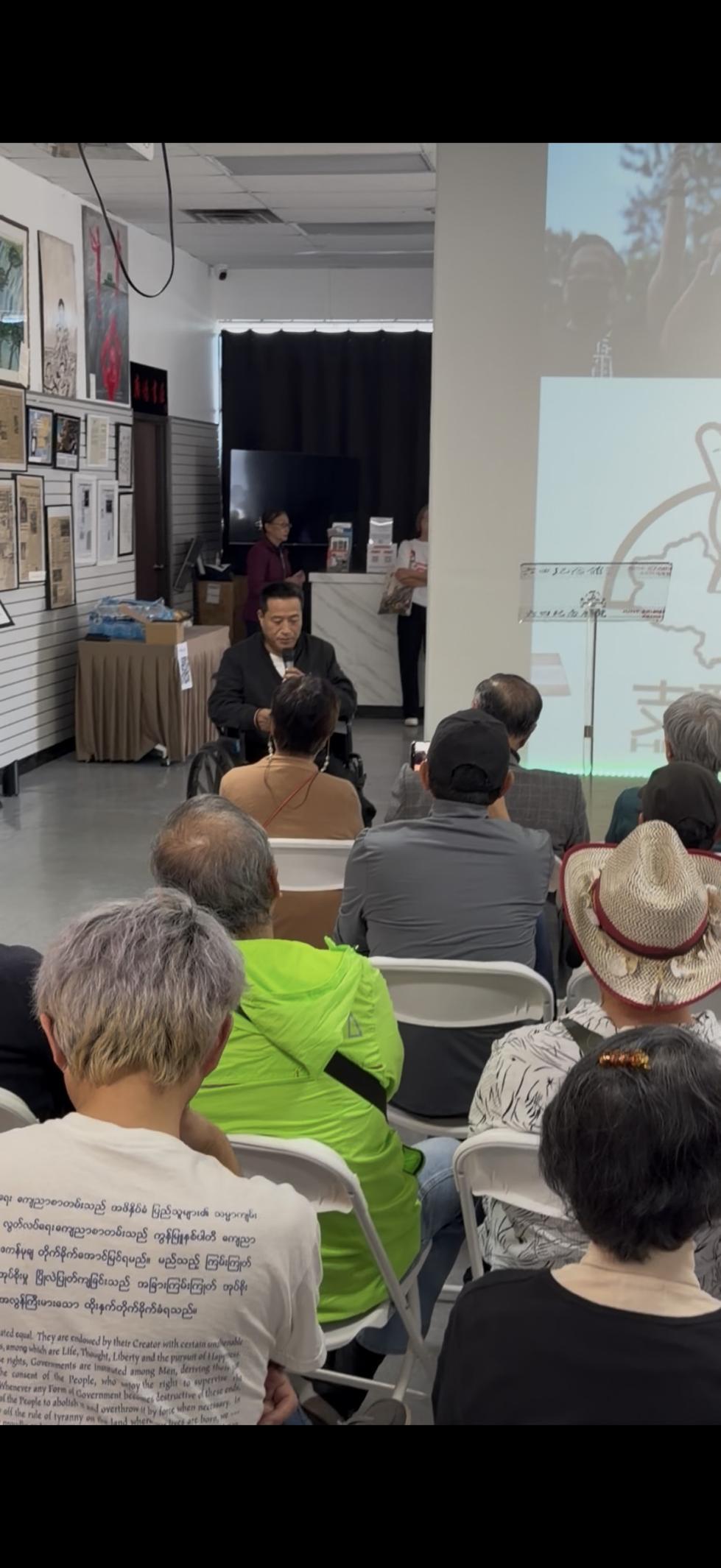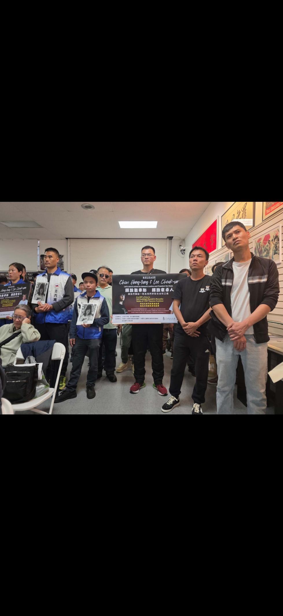 今日,洛杉矶六四纪念馆的墙壁上挂满了历史的见证。集会现场,投影幕布上清晰地写着:“反对任意拘禁!”“释放李卓人!”“释放邹幸彤!”这些字句在昏暗的馆内熠熠生辉,像是从香江彼岸传来的嘶吼。