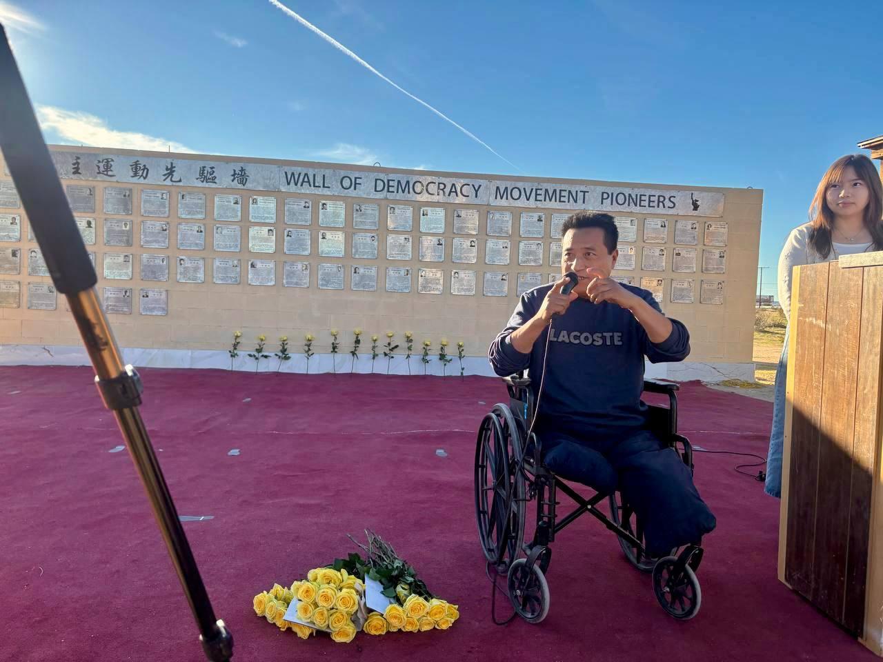 Fang Zheng, who narrowly escaped death under the brutal crackdown of the Chinese Communist Party during the June Fourth massacre, drove a long distance to attend the inauguration ceremony of the Pioneers Wall. He expressed the hope that the torch of democracy would be carried forward by the younger generation, enabling them to rise to the occasion and make historic contributions amid the once-in-a-century transformation of the world.