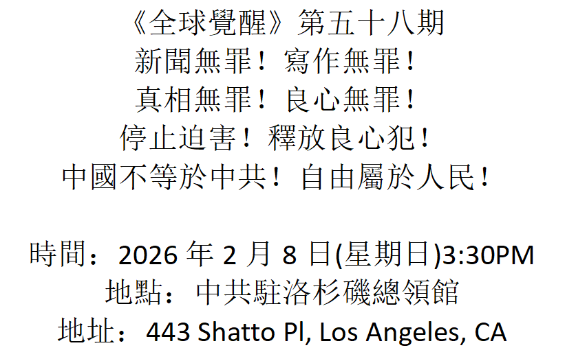 📢 活動主題:抗議中共迫害調查記者、全面封殺輿論監督
