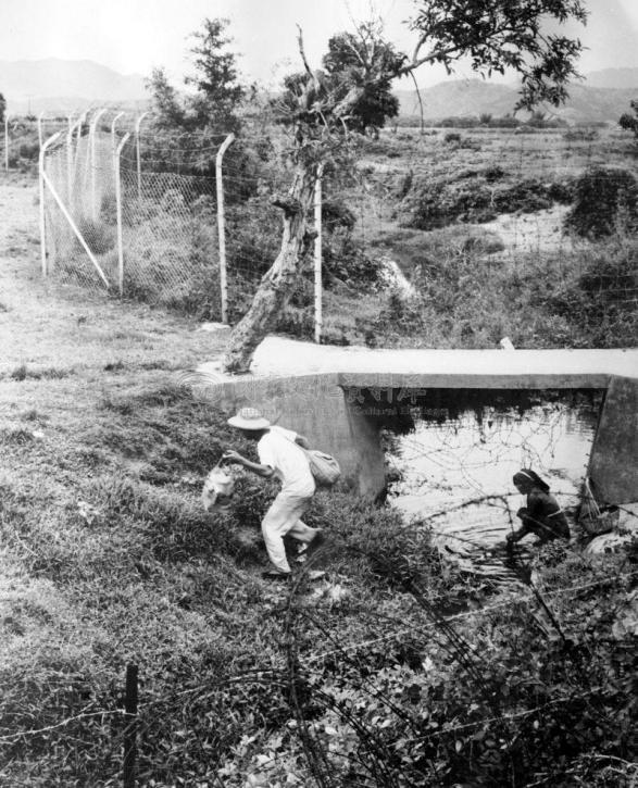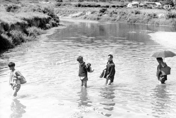趁深圳河枯水期涉水前往香港地逃港者 摄于1962年