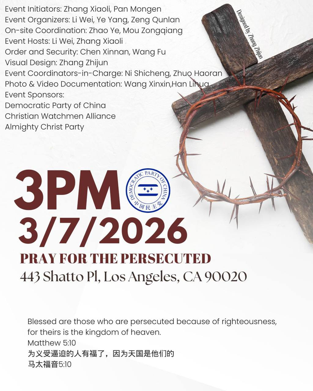欢迎所有关心宗教自由与中国人权的朋友到场参与、转发,让更多人看见中国家庭教会的处境。