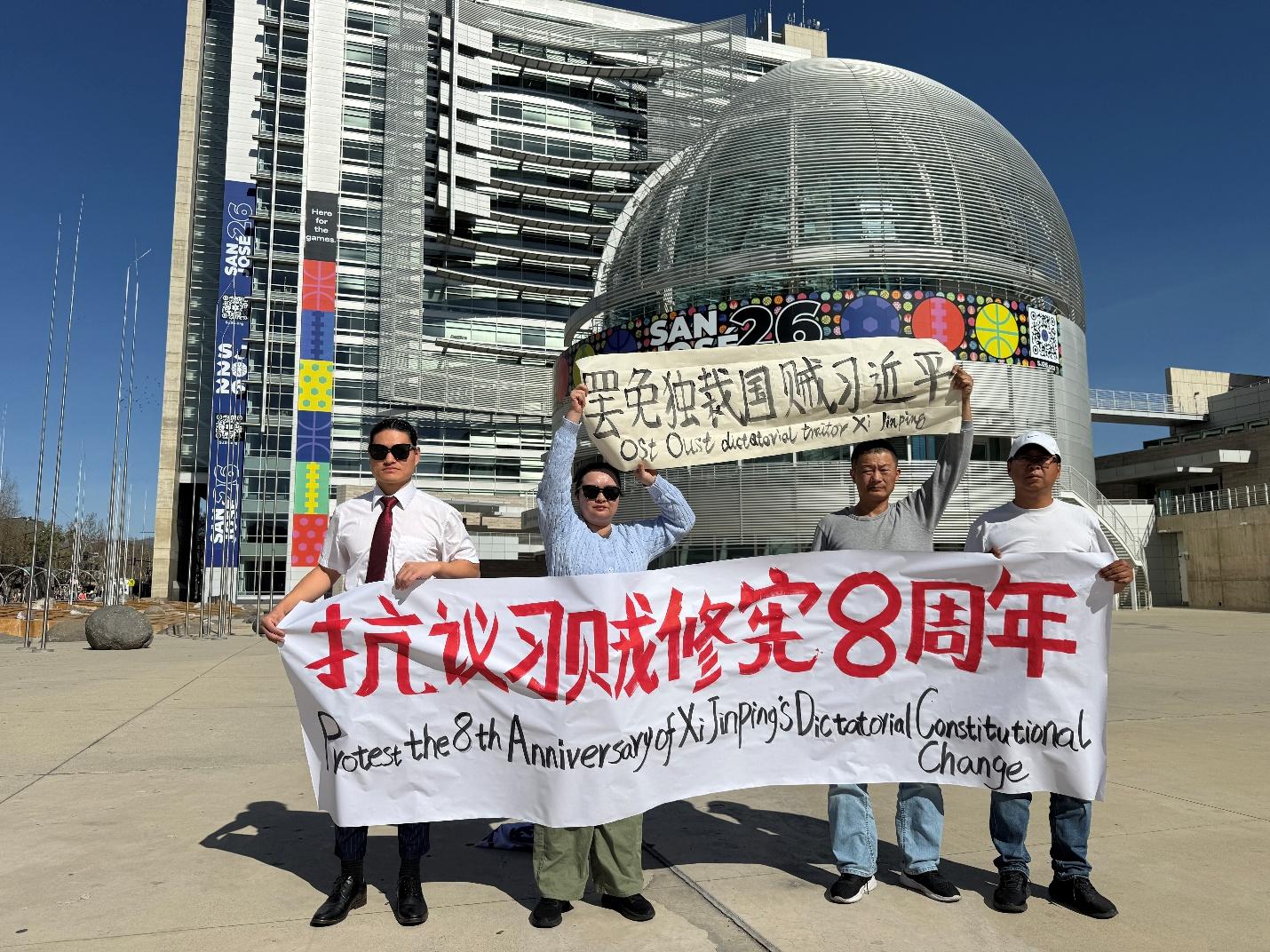 2026年3月15日下午,由中国民主人权联盟旧金山分部组织的“抗议习近平修宪”活动在San Jose 市政厅前举行。多位参与者发表了讲话并进行了交流讨论。