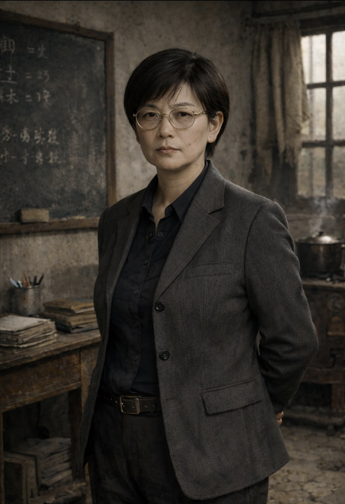 She was a middle-aged woman, in her thirties when she taught me. Fair-skinned and neatly dressed, she wore the kind of gold-rimmed glasses that were rare in those days. Her hair was cut short, just to the ears. She had a slightly plump build and dressed year-round in solemn black or gray suits, paired with neutral leather shoes. Her voice was low and deep. In both appearance and bearing, she felt almost like a man.