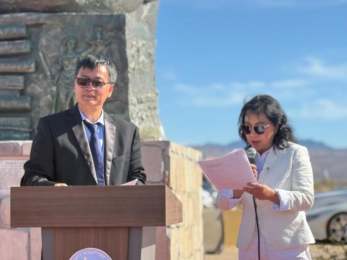 感謝大家共同紀念高智晟,並向耿和致敬。高智晟以信仰為根基,堅守人權與法治。今日揭幕陳維明創作的雕像,象徵對自由的追求與對暴政的抗爭。然而,中國共產黨及習近平的影響已延伸至美國,對異見人士進行打壓與騷擾。面對跨國鎮壓,必須守護言論自由與法治,揭露真相、銘記歷史。無論出身何處,我們都應珍視自由,在這片土地上堅定地說:我們都是美國人。
