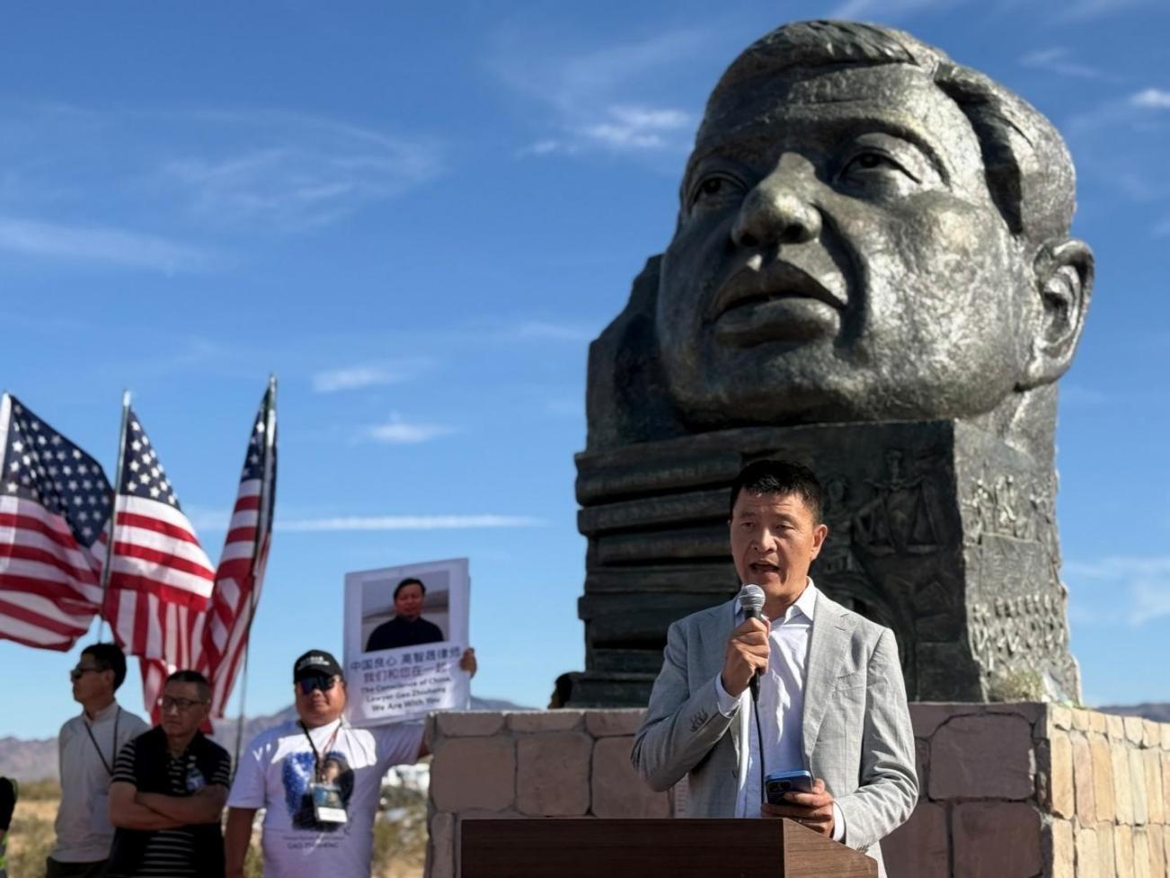 On April 4, 2026, the sculpture titled Looking Up at the Starry Sky—Gao Zhisheng, created by artist Chen Weiming and his team, held its inauguration ceremony at the Liberty Sculpture Park in California.