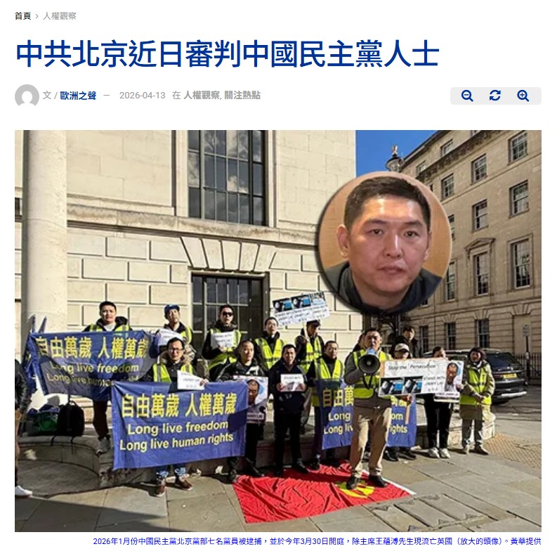 Recently, upon reading the news that members of the Beijing branch of the China Democratic Party had been handed down heavy sentences, I felt a heavy heart and deep anger. According to a report by *Sino-European Voices*, the Beijing branch of the China Democratic Party was established in Beijing on October 8, 2025; by January 2026, several members had been arrested; a closed-door trial was held on March 30, and on March 31, they were handed down heavy sentences for “subversion of state power.” Among them, Vice Chairman Wang Shi was sentenced to seven and a half years, while the remaining members received sentences ranging from three to seven years, some with suspended sentences.